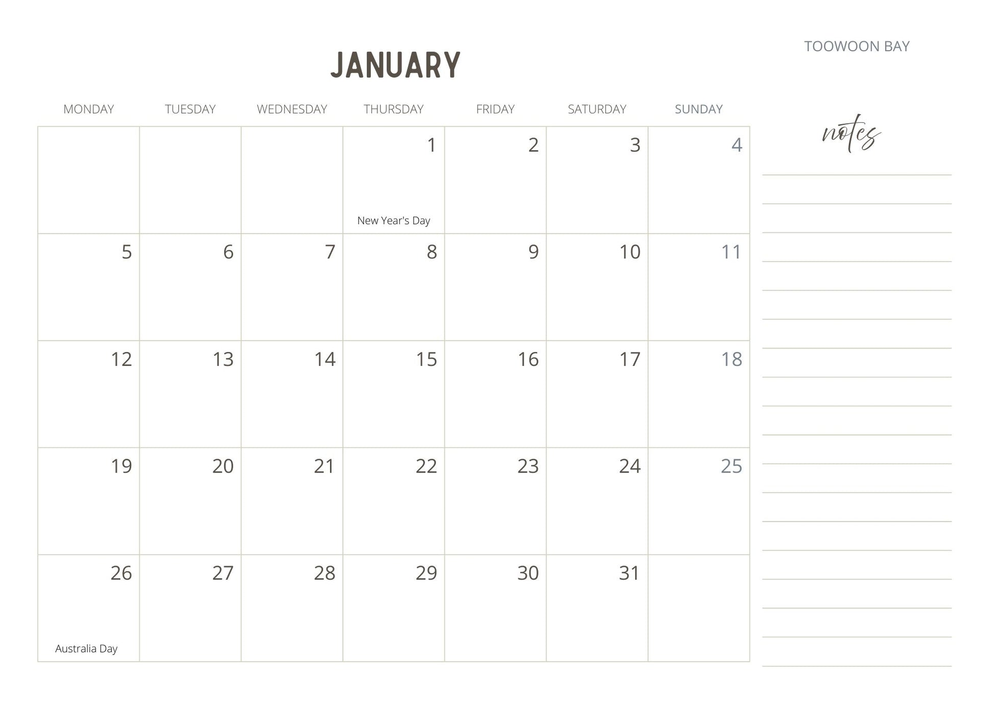 ✔ Large date grid for notes and reminders